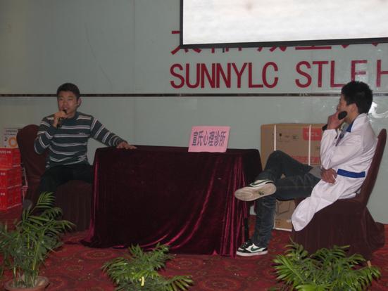 (图为:职工表演小品“骗子看医生”) (图为:吴总献唱“给我一次疼你的机会”)