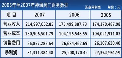 根据神通阀门《2008年招股说明书(申报稿)》显示,2005、2006年度营业收入及营业成本几乎相同,其中2005、2006年两年公司营业收入分别为1.74亿元、1.75亿元,两年公司的营业成本都为1.04亿元。公司05至07三年销售费用都是2600多万,也是几乎相同。
