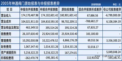 神通阀门对公司2005年利润表申报前后进行调整所引发的差异共做出5项解释说明。