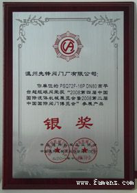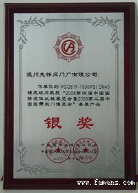 公司罐底球阀产品在08年(北京)中国国际阀门博览会获得银奖称号