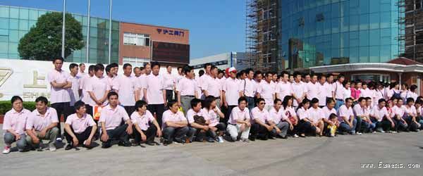 图为该厂员工出发前的合影!