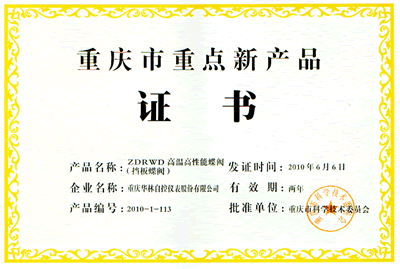 2010年7月7日,重庆市科委正式对外公布了2010年重庆市第一批市级重点新产品目录。重庆华林自控仪表股份有限公司申报的挡板