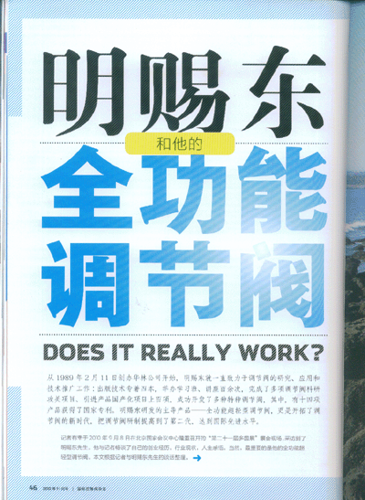 《国际控制阀》杂志特约记者于2010年9月8日在北京“第二十一届多国展”展会现场,采访了我国著名的调节阀专家、华林集团董事长——明赐东先生。