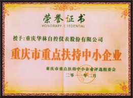 2011年2月20日,重庆华林自控仪表被重庆市重点扶持中小企业评选组委会评选荣获“重庆市重点扶持中小企业”荣誉称号。 荣获该项称号后,企业将享受相应的优惠扶持政策,如贷款无抵押、贷款享受低利息或政策贴息,最多可贷款3000万元(三年内偿还)。该项扶持活动将于今年四、五月份启动。 另据悉:重庆华林自控仪表是重庆市中小企业发展指导局、中国光大银行重庆分行从重庆市近20万家中小企业中选拔出来的200家企业之一。