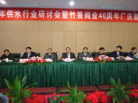 11月26日,江苏竹箦阀业公司高层领导和员工代表与中国城市排水行业协会、中国建筑金属结构协会和有关主管部门的领导,以及经销商、供应商等各界人士300多人聚集在常州溧阳天目湖一起隆重举办“2012年供水行业研讨会暨竹箦阀业40周年厂庆联谊会”,大家兴致勃勃一起隆重庆祝江苏竹箦阀业建厂四十周年,祝愿江苏竹箦阀业在今后的发展征程中继续创造辉煌的业绩,继续成为中国调节阀行业中低压阀门骨干制造企业之一。