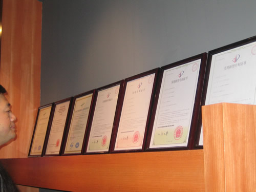 成排的专利证书