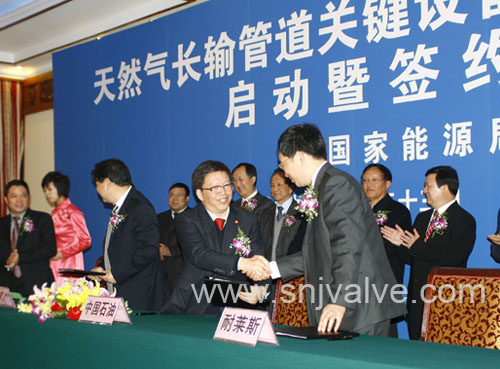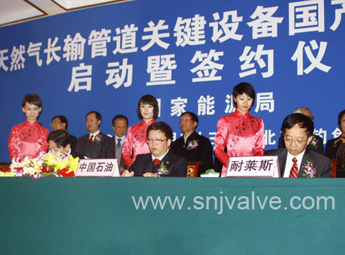在本次签约仪式前,国家能源局、中国石油天然气集团公司和中国机械工业联合会组织了大量的调研和考察,最终上海耐莱斯.詹姆斯伯雷阀门有限公司从众多调节阀厂家中脱颖而出,成为高压大口径全焊接球阀的指定制造商之一,这显示了国家相关专家组对SNJ公司综合能力的高度认可和肯定。在本次签约仪式上,国家第一次将高压大口径阀门列为重大装备之一,受到国家高层领导的高度重视,这突出了国家领导要求加快高压大口径阀门国产化步伐、尽快打破国外电动调节阀垄断局面的决心和信心。
