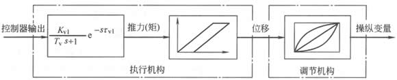 执行机构和调节机构组成。执行机构可分解为两部分:力或力矩转换部件和位移转换部件。将控制器输出信号转换为调节阀的推力或力矩的部件称为力或力矩转换部件;将力或力矩转换为直线位移或角位移的部件称为位移转换部件。调节机构将位移信号转换为阀芯和阀座之间流通面积的变化,改变操纵变量的数值。下图是