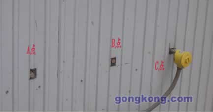 2、在管道2600mm侧距外壁650/1300/1950mm处分别开A、B、C三个孔,见图一。