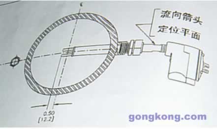 ST98流量元件未端靠近封装的地方有一个小平面,在这个小平面上有一个指示流体流向的箭头(见图一),安装时应注意标有流向箭头的小平面与过程介质流动的方向平行,并是流向箭头指向过程介质流动的方向。