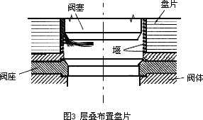 b)每一盘片内圆周出口处都有堰,使四周压力平均,下层盘片出口给水不会把介质直接冲击在阀座上,如图3、图4。