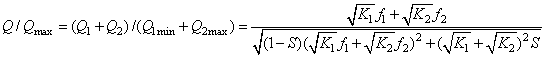 调节阀组的流量特性与调节阀与管道并联时的流量特性类似,但管道阻力变为阀门阻力,设有阀门1、阀门2并联使用,流量特性分别为f