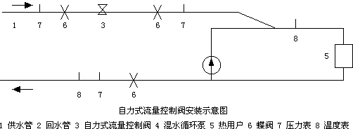中心站系统在改选中遇到的突出问题,是现有的管网怎样与供热能力达到供热面积80万m2相匹配。如果新敷设管网可满足供热需求,但投入难以承担。如果利用原热网水—水二次换热,也可满足供热需求,但要改建部分热网,建若干座换热站,运行成本会加大,供热效率低。在广泛调研论证的基础上,与廊坊爱能供热设备有限公司合作,选用混水供热方式,并在混水系统中安装了爱能牌自力式流量控制阀,解决了上述突出问题,带来了巨大的经济效益和社会效益。