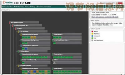 必须注意的是,尽管以上提到的自动生成的趋势仅仅是数值而已,但如果定时下载,则可以预测潜在问题的产生。虽然这个操作相对比较简单,但对于成百上千个阀门而言,则必须投入大量时间和精力。FieldCare软件及其状态监测功能将自动查验所有智能阀门和其它仪表。随后,它会将每个趋势的量新结果与用户设定的每个报警界限进行比较,并自动报告出趋势超出报警界限的阀门。报告有以下三种不同的格式。