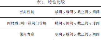综合以上分析,针对涂装线的低压管道,把常用的手动阀门的各种特性进行排序见表1,以方便选择。