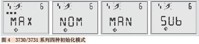 3730/3731系列可有四个初始化模式:MAX最大行程初始化模式、NOM额定工作行程初始化模式、MAN手动行程初始化模式、再就是紧急情况下的SUb替换初始化模式,参见图4。