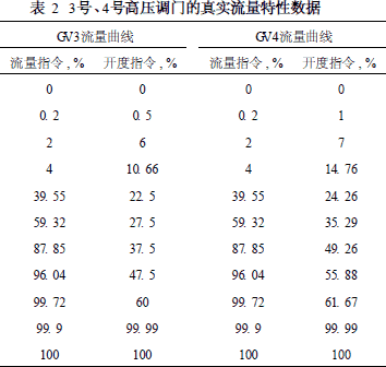 根据表1中的参数整定试验原始数据,通过数据分段及线性化处理后得出3号、4号高压调门的真实流量特性数据,如表2。