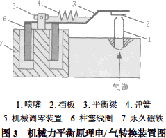图3是美国SAMSON公司根据机械力平衡原理生产的电/气转换装置原理图,用于电/气转换器。日本山武·霍尼韦尔公司生产的HEP电/气阀门定位器,上海长成自控设备有限公司生产的QZD—2000型电/气转换器以及2000型系列电/气阀门定位器,常州市石化仪表厂生产的QED2000电/气转换器、EP3000电/气阀门定位器、IPD2000电/气阀门定位器等都是基于上述机械力平衡原理的,转换装置结构都相似。