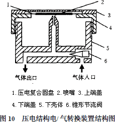 图10是压电复合圆盘转换装置结构图,双晶片固定在上下端盖之间,为便于观察,上端盖材料采用有机玻璃,下端盖和下壳体用螺纹连接,可以灵活调整双晶片的初始位置。外加电压作用在双晶片上,从而通过调整双晶片与喷嘴之间的距离来调整背压室气压。