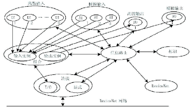 在DeviceNet现场总线技术中,采用对象模型(ObjectModel)描述DeviceNet产品的外部特征及信息交换方式。类是指表现出相同类型的系统成分的对象的集合,类是一个对象的概括,某类内的所有对象在形式及行为上是相同的,但有可能具有不同的属性值;对象实例是指在分类中某一特定对象的具体表示。一个分类的每个实例不但有一组相同的属性,也有自身的一组特定的属性值,在一个DeviceNet节点的一个特定分类中,可以存在多个对象实例。总线上的每个设备都是DeviceNet节点,可以分为多个对象模块,每个模块具有属性(数据)、服务(方法或步骤)和行为。对象就是相关服务和属性的集合;属性是用数值表示的、可以变化的对象特性,通常属性提供状态信息或管理对象的操作;服务是对象或类提供的功能;对象行为是指对象检测到不同事件而产生的动作。