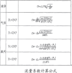 只要确定了阀门的最大流量、阀全开时的压力、介质密度等参数,就可以根据下表的公式计算这是流体的最大流量系数。