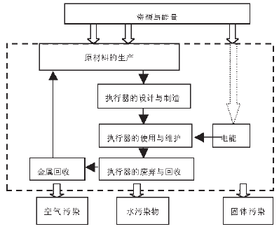 以汽缸为代表的气动执行器由于系统构成简单、元器件价格低廉、维护容易等特点,从20世纪70年代开始在工业自动化领域的应用逐步扩大,至今已形成全球年销售约110亿美元的市场规模,在汽车、半导体制造等行业中发挥着重要的作用。但在原油日益高涨、能源问题突出的今天,气动执行器效率偏低、运行能耗成本高昂等问题也引起了人们的关注。相对气动执行器,电动执行器具有能量转化率高、运行成本低等优点,但元器件昂贵,约为气动执行器的3-8倍。在执行器的选择上国内外尚有争议,一直尚无充足的数据来论述两者选择的标准。二者的综合成本以及生命周期中对环境产生的负担(能耗和排放)方面的评价比较国内外为空白。现在各企业已意识到能耗问题并开始采取积极有效的措施来降低系统的能耗,而执行器的选择问题就是实施节能的关键一环。生命周期评价(LCA)就是在总的成本和总的环境负担基础上,来评价产品的投入产出的一种工具。但是LCA对典型的机电产品系统的研究还没有展开。