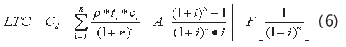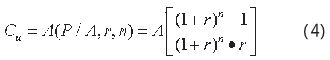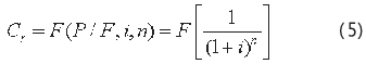 式中,F为期末的一次性放弃/回收费用;(P/F,i,n)=[•]为复利现值因子。故(1)可写为:
