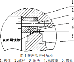 新设计的蝶阀产品密封结构如下图1。橡胶密封圈直接安装在阀体上,老产品压密封圈的整体压板改为分段压块,这样在试密封时,可以分段调整胶圈到最佳密封状态,既保证了密封,也使胶圈压缩到最小程度,有利于延长胶圈的使用寿命。