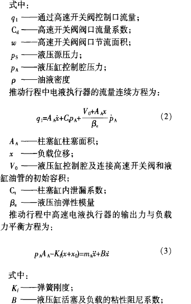 其流量连续方程与负载运动力平衡方程与推进行程相同。