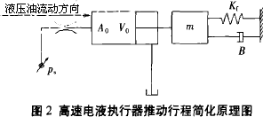 由于高速开关阀的响应速度远远大于电液执行器的动态响应速度,因此可以把推动行程中高速开关阀阀口简化为一个固定液阻,高速电液执行器的工作状态可以简化为图二所示模型