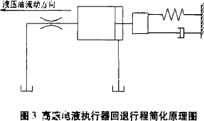 同样由于高速开关阀的响应速度远远大于电液执行器的动态响应速度,因此可以把回退行程中高速开关阀阀口也简化为一个固定液阻,此时高速电液执行器的工作状态可以简化为如图3所示