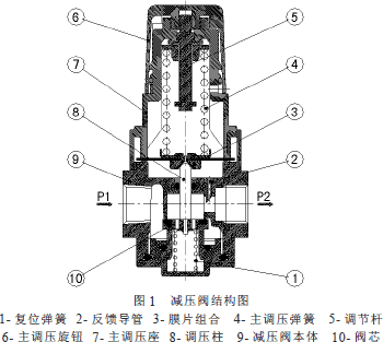 图1所示为带溢流功能的膜片式直动减压阀的结构图。