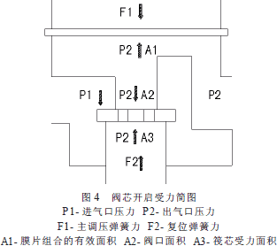 A1-膜片组合的有效面积A2-阀口面积A3-筏芯受力面积