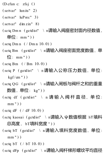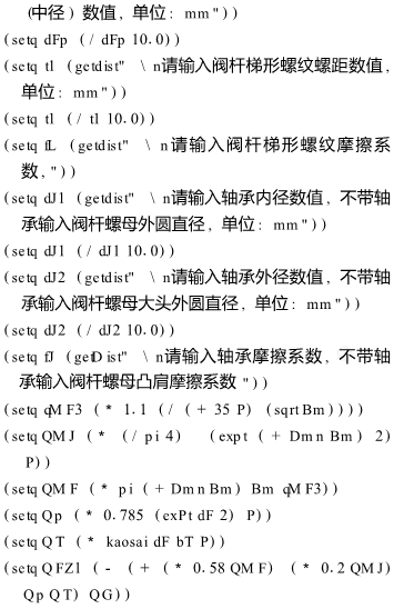 AutoLisp语言编制而成,程序应用时在AutoCAD界面加载后即可运行。该程序计算一个规格的阀门驱动扭矩约需1min,大大地提高工作效率及准确度。以明杆楔式