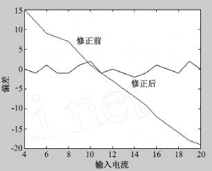 由表1可以看出,补偿后精度很高,由于采样A/D是12位的芯片,精度为(2-(-2))/4096=0.00978,完全满足设计需求。采样值修正前与修正后与理论值偏差相对采样电流曲线如图6所示。