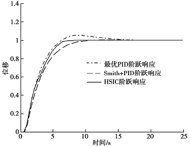 由表1可知,仿人智能控制器与PID+Smith控制器、最优PID控制器相比具有较好控制性能,阶跃响应速度快且无超调。