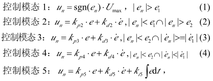 5)在偏差减小过程中,若偏差变化速度大于预定的速度时,对应区域③,在比例模态的基础上,引入强微分控制,使得偏差变化速度尽可能快的减小。因此,根据偏差e和偏差变化速度e,运行控制级可以划分为5个模态: