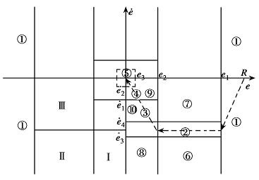 仿人智能控制算法依据目标轨迹在误差相平面上的位置,以及控制器的运行控制级、参数校正级,划分出特征状态级,从而构成不同级别的特征模型。