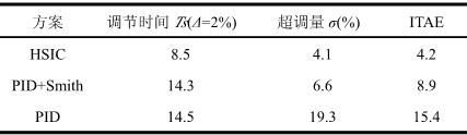 为了对比控制效果,选用PID+Smith控制器和最优PID控制器。最优PID目标函数选取ITAE性能指标: