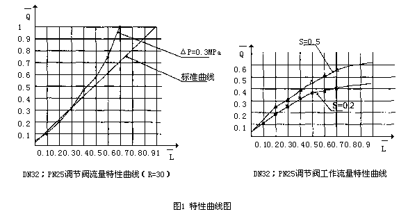 DN32;PN25闸板式调节阀的流量特性曲线是在理想状态下试验得出的,即系统阻力与阀门相比,仅占很小比例。但在实际运行中,尤其在锅炉启动过程中,在整个系统的压力降是一定值时,系统阻力很大,将会引起调节特性曲线变形,使管系的工作特性失真。所以,我们按下式对特性数据进行调整。