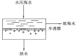 在压力驱动下,海水中的淡水通过半透膜进入膜的低压侧,而海水中的其他组分(如盐)被阻挡在膜的高压侧并随浓缩海水排出,从而达到有效的分离。海水淡化时,在海水一侧施加大于海水渗透压的外压,则海水中的纯水将反向渗透至淡水中,此即反渗透海水淡化原理(图1)。为了取得必要的淡化速率,实际操作压力大于5.5MPa。