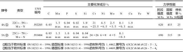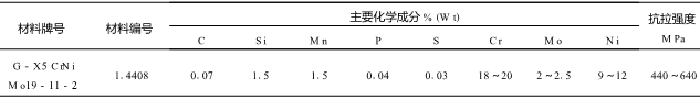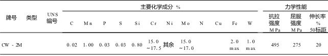氯离子浓度≤0.1%(Wt)时,选用Hastelloy 镍合金ASTM A494CW-2M(表5)。
