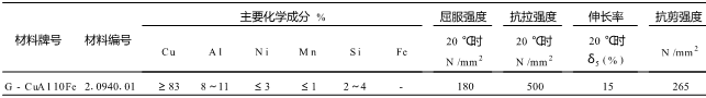 海水蝶阀的铝青铜蝶板,常用的牌号G-CuAl10Fe(DIN 1705、1709,DIN 1714、1716)。与其相对应的中国牌号为ZCuAl10Fe3(原牌号为ZQAl9-2)。氯离子含量在0.03%(Wt)以下的海水工况,可采用铝青铜铸造的蝶板(表2)。