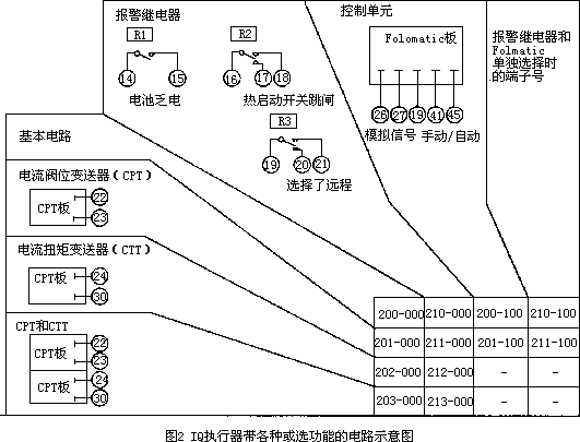 IQ执行器基本功能及带各种可选功能电路示意图见图1和图2。
