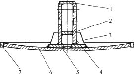 1 肋板(三) 2 肋板(二) 3 肋板(一) 4 立板 5 垫板 6 大圆钢板 7 座圈