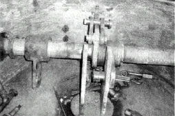 用有限元技术对这种结构进行分析,如图3所示是在DN1700连杆蝶阀传统结构阀板上加0.4MPa压力时的分析结果,可以看出整个阀板最大变形处在两立板上,此时发生的最大变形为1.69mm,这样会使与阀板相连的销轴和轴套受到很大的损坏。如图4所示是热风炉冷风管道的DN1700冷风阀的损坏情况(冷风管道压力为0.47MPa,温度为350℃),该阀门损坏原因是与阀板相连的销轴变弯,销轴处自润滑轴承被完全挤碎。