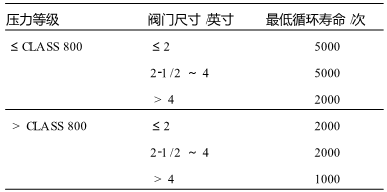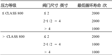 (3)在要求低泄漏的工况,应采用低泄漏的闸阀。低泄漏的闸阀有多种结构,其中在化工装置中一般使用波纹管式闸阀,最低循环寿命见表3。