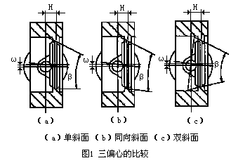 在三偏心蝶阀的设计和生产中,国内企业大都采用的第三角偏心β为单斜面角偏心和同向斜面角偏心,其主要缺点是密封面受力不均匀,反向密封性能低,加工困难,工件摆动范围大。而双斜面角偏心,其最大优点是蝶板在圆周方向可保证各点的密封正压力分布均匀,双向密封性能可靠,加工方便,工件加工摆动范围小及动水力矩很小,启闭速度快等特点。无论在低温和高温情况下,均具有优越的密封性能,该类间是目前唯一能实现无摩擦、零泄漏、低扭距、温度在-196~600℃、公称压力≤4.0MPa的高性能蝶阀。产品性能处于国内外领先水平。广泛应用于石油、化工、高温煤气、可燃性气体、冶金、电力、钢铁、城市供热。供水和污水处理等各种工业领域上作快速截断或调节介质流量的装置。
