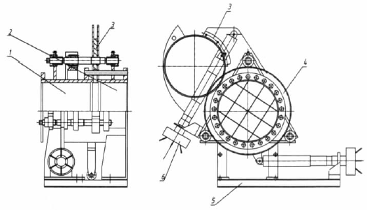 1.左阀体2.右阀体3.阀板4.启闭机构5.底座6.驱动装置