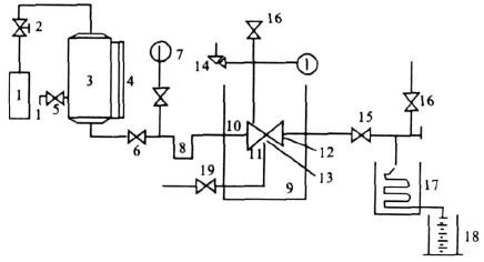 9 试验箱 10 试验阀 11 燃气喷嘴 12 测温块 13 热电偶 14 压力表及泄放阀 15 截止阀
